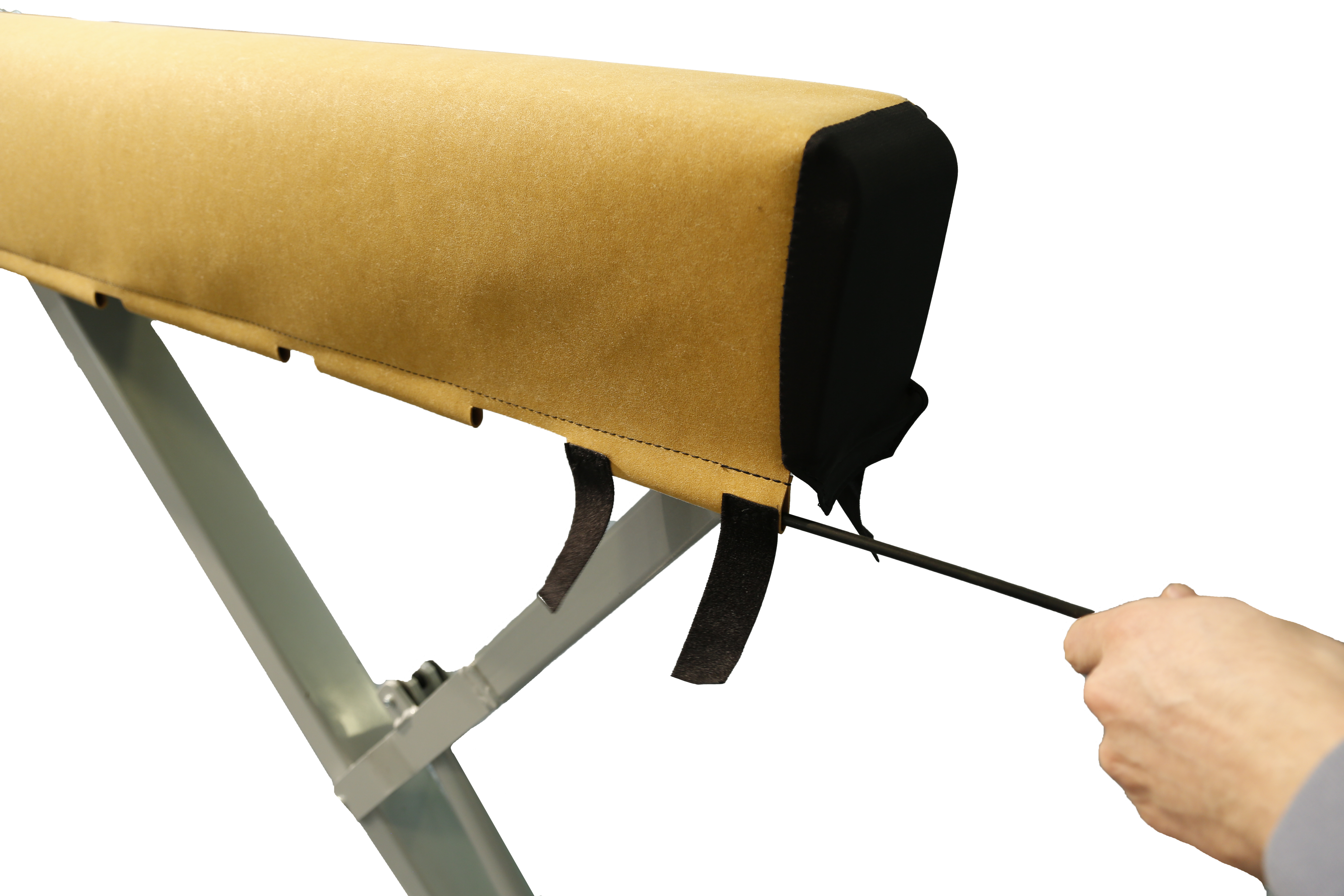 Easy to attach and remove. The existing padding is not damaged in the process. Suitable for “Club” and “Soft Touch” balance beams with a length of 5 m. The cover is attached with hook-and loop tape, allowing the tension of the cover to be adjusted optimally.