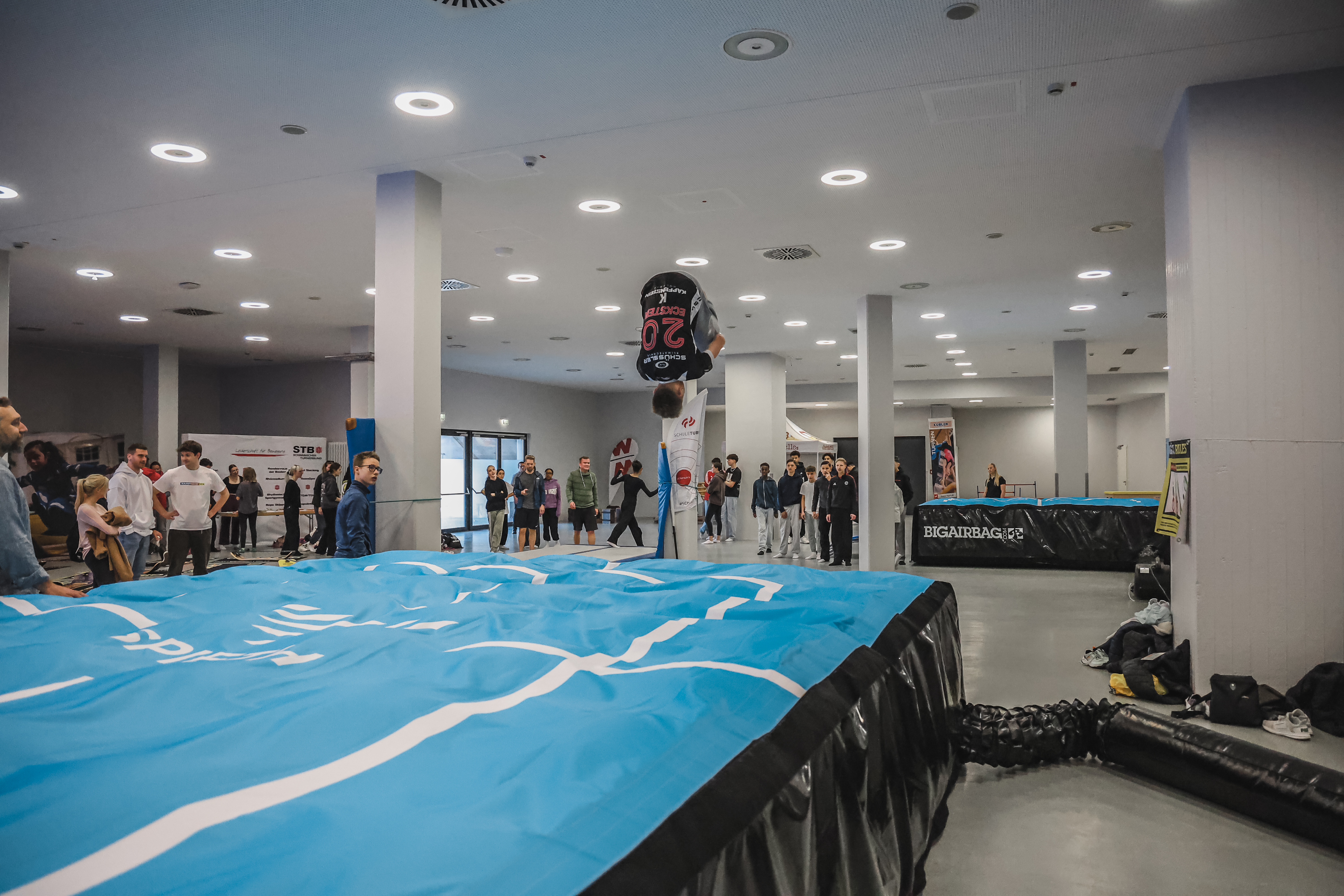 The Airbag is easily transportable and allows gymnasts to create a dynamic and realistic landing platform for any discipline anywhere. It is an impact-attenuating airbag designed for simultaneous landings. This portable, easy-to-store solution can be set up in minutes, allowing gymnasts to train anywhere they like. It features adjustable pressure valves for different training scenarios and no in-ground pit is needed. The Airbag is available in three different sizes (S, M and L).