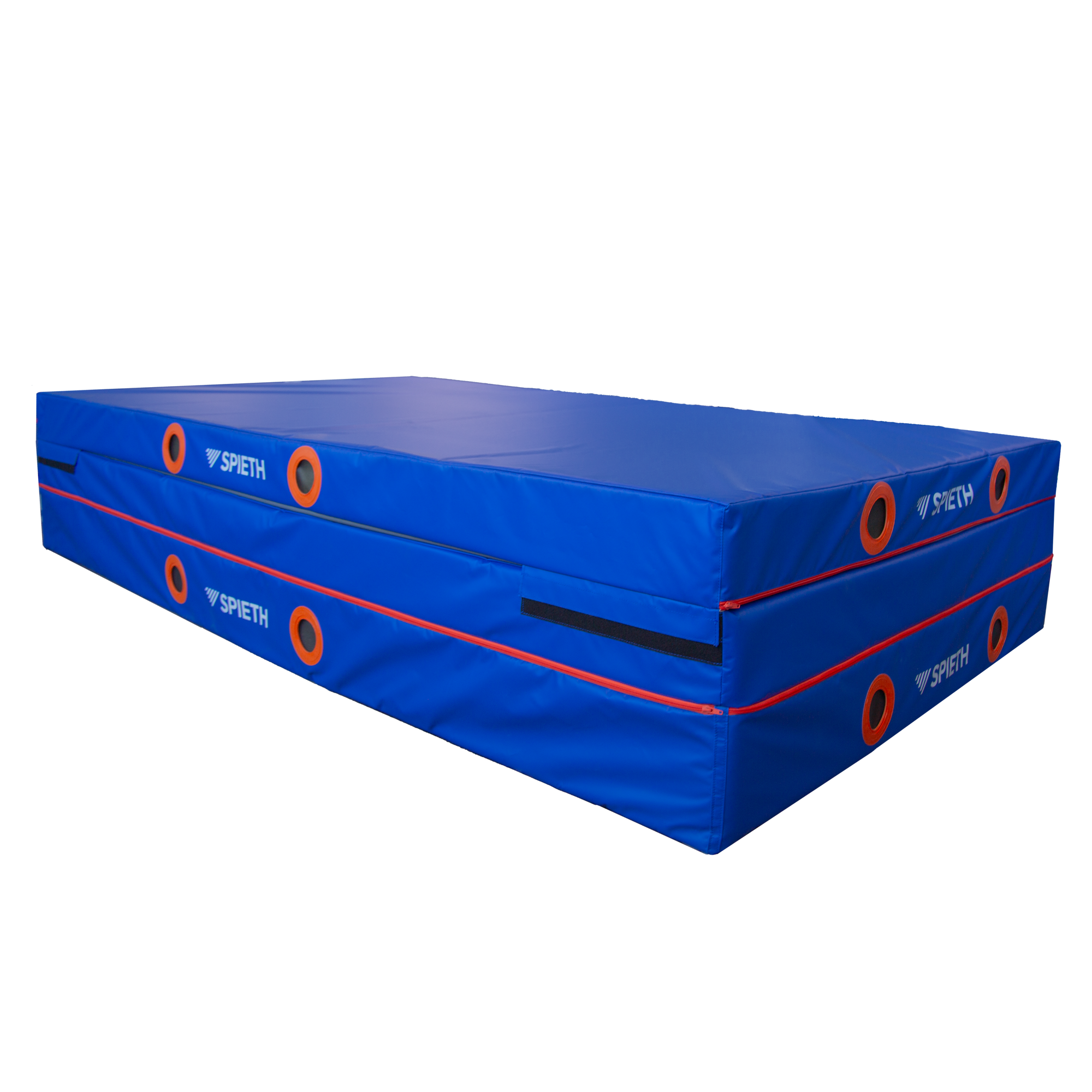 This extra soft landing mat has 3 polyether foam layers each with their own specific impact absorption. Basic setup comparable to closed landing pit fitted all round with handy-grips for rapid deflation and easy transport. Soft top for a comfortable landing and anti-slip underside.